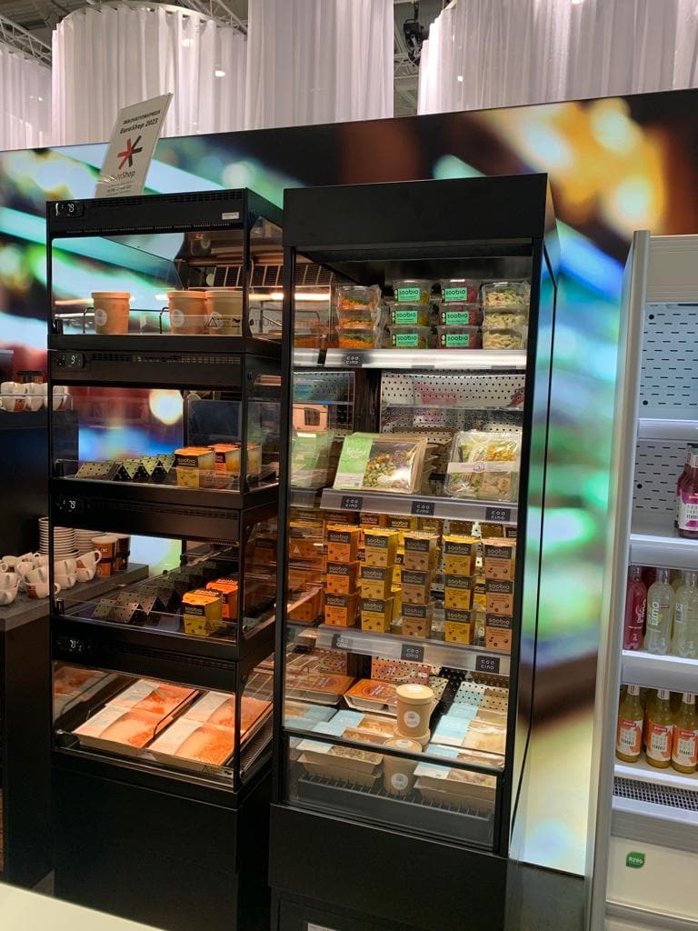 Clevere Self-Service-Lösungen wie die kompakte, modulare Warmhaltevitrine HOT VARIO sind die perfekte Lösung für Ihr Take Away Geschäft und lässt sich perfekt mit dem IDEAL AKE Produktportfolio kombinieren, wie zum Beispiel hier mit dem CALEO. Die mit dem Innovationspreis auf der EuroShop ausgezeichnete Vitrine sorgt mit neuartiger Umluftwärmetechnik für Temperatursicherheit heißer, verpackter Snacks. Als Auftisch-Einzelmodul oder als Turmlösung vielseitig einsetzbar, war sie gleich mehrmals auf unserem Messestand vertreten.