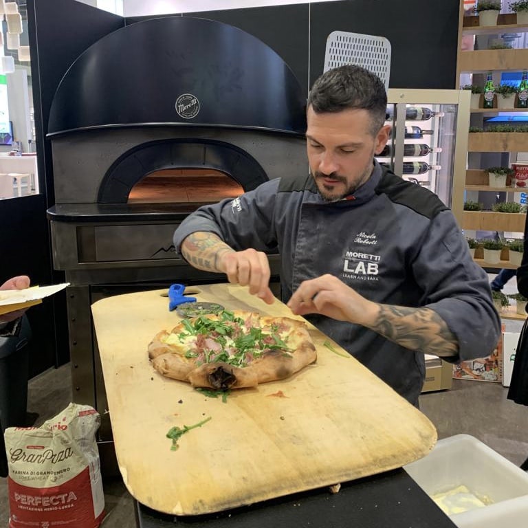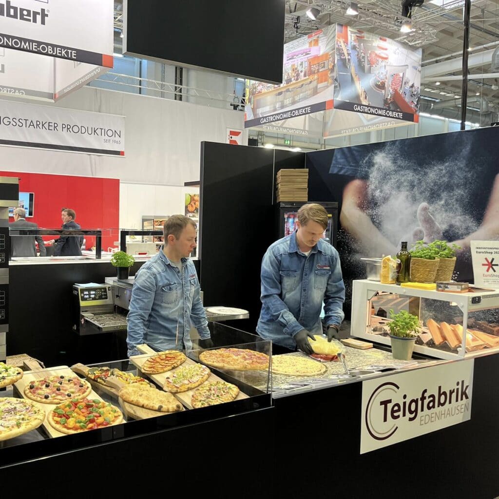 Mit den Pizzaböden der Teigfabrik Edenhausen werden Sie zum Pizzaprofi: Einfach die tiefgefrorenen Pizzaböden vor dem Gast belegen und im Pizzaofen serieS 50 E von MORETTI FORNI fertig backen. Ein einfaches Konzept, das sich überall umsetzen lässt.
